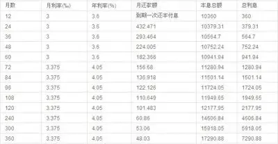 2010年公积金贷款利率(10月20日利率,以贷款1万元为例)